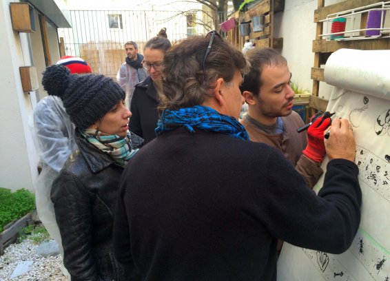 "Le but de l’atelier du jour : créer pour la ville un environnement propice à l’épanouissement d’un écosytème, avec la participation des habitants. Ils l’appellent l’autoroute à insectes."